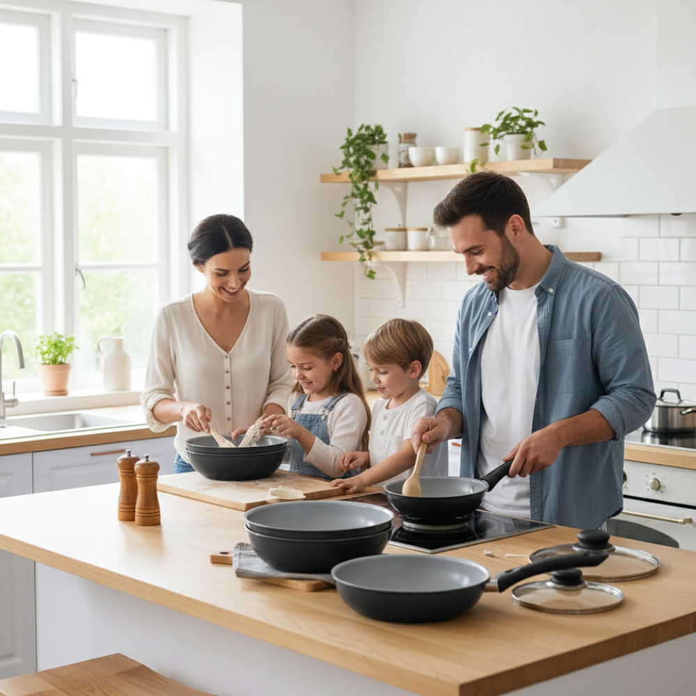 Unser Kochgeschirr besteht aus ungiftigen, PFOA-freien und PFOS-freien Materialien und gewährleistet ein gesundes Kochen mit Antihaftbeschichtung, das für dich und deine Familie sicher ist.