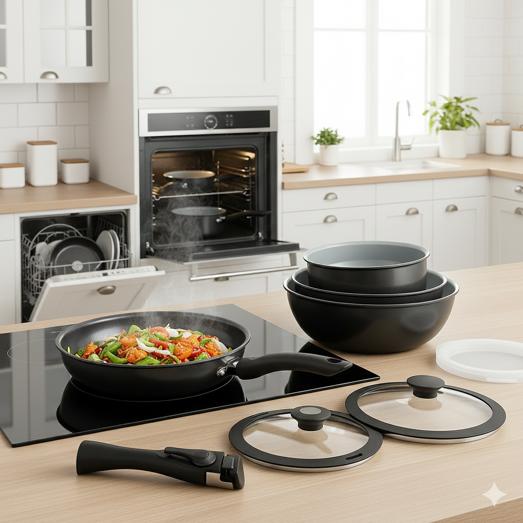 Ob für schnelle Alltagsgerichte oder aufwendige Menüs - die vielfältige Auswahl an Töpfen und Pfannen mit Antihaftbeschichtung und abnehmbaren Griffen macht für dich und deine Familie jedes Kocherlebnis zum einzigartigen Vergnügen.